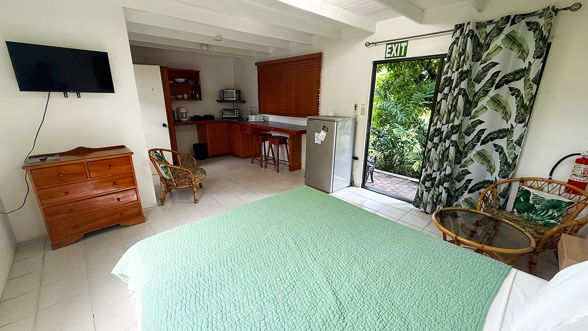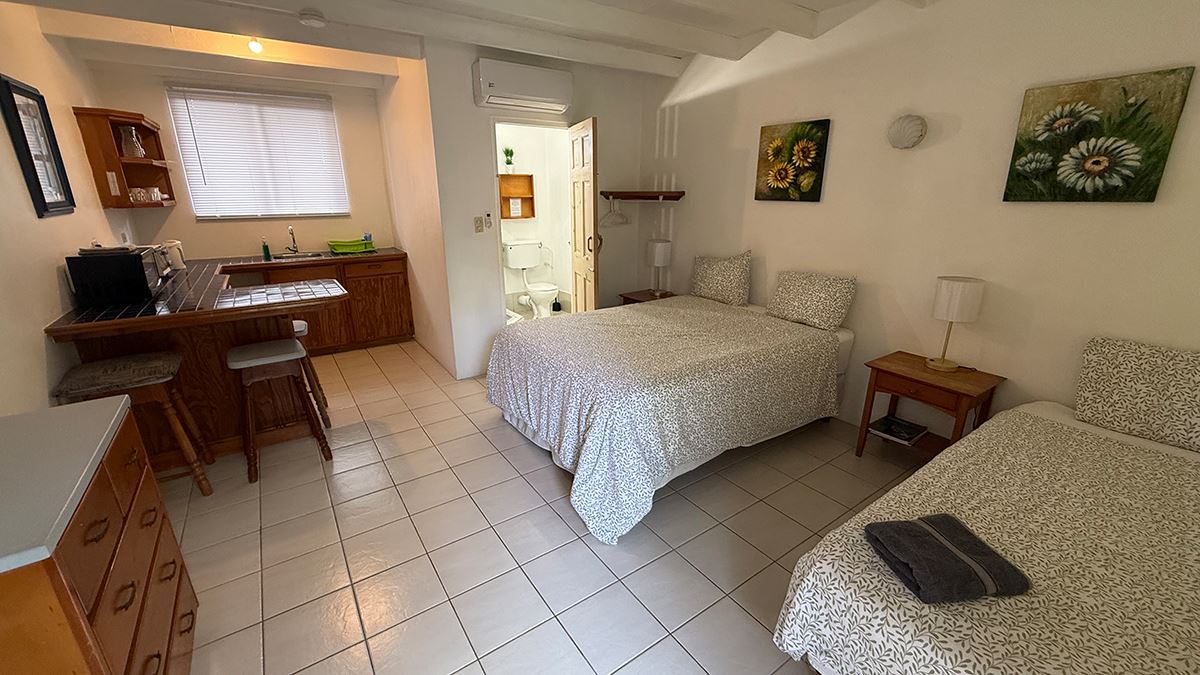 Die Studios befinden sich alle im Erdgeschoss. Die Zimmer haben entweder Quees Size Betten, oder 2 einzelne Betten.