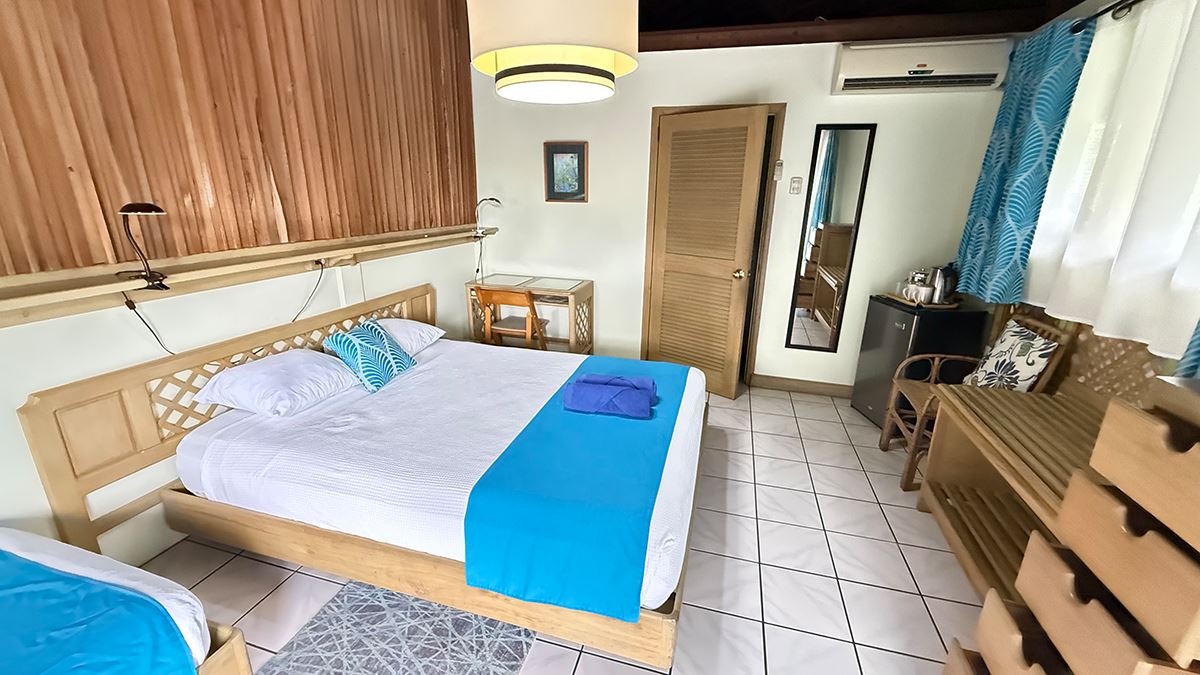 Die Anlage ist in fünf Zimmerkategorien unterteilt, die sich durch ihre komfortable Ausstattung auszeichnen. Alle Zimmer verfügen über Klimaanlage, Deckenventilator, Kabel-TV, Minikühlschrank und Safe. Gäste können zwischen Standardzimmern mit Pool- und Gartenblick, Superior Zimmern mit Garten- oder Meerblick, Deluxe Zimmern mit Meerblick (2ter Stock) und Deluxe Suiten mit Pool- und Meerblick wählen. Von der Frühstücksterrasse genießt man einen traumhaften Blick über das Wasser bis zum Pigeon Point.